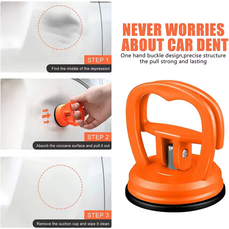 Compact and durable design for quick dent removal on cars and other smooth metal surfaces. Features a strong rubber suction cup, a comfortable grip handle, and a paint-safe, reusable design that is easy to use and clean.